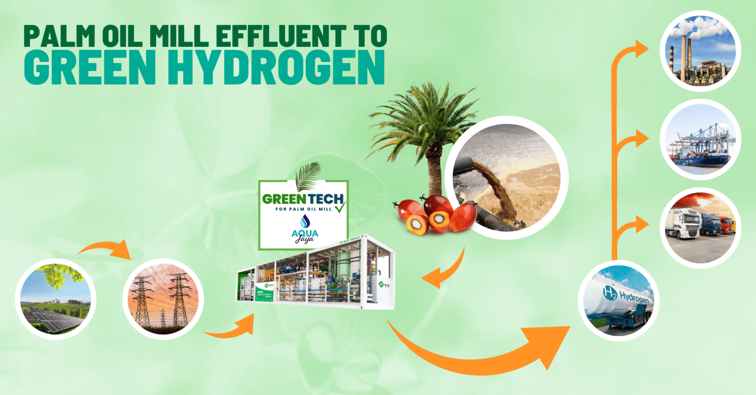 Green Hydrogen is produced through electrolysis of water using renewable energy, offering a promising alternative to reduce carbon footprint. Essentially, Green Hydrogen can be considered a “clean fuel” as it produces no carbon emissions when utilized. This innovation is particularly relevant in the context of palm oil mill waste processing, where organic waste can be converted into a clean and sustainable energy source.